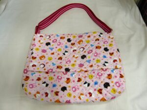 キルティング生地の図書袋です。肩ひもアジャスターと内ポケット付き。